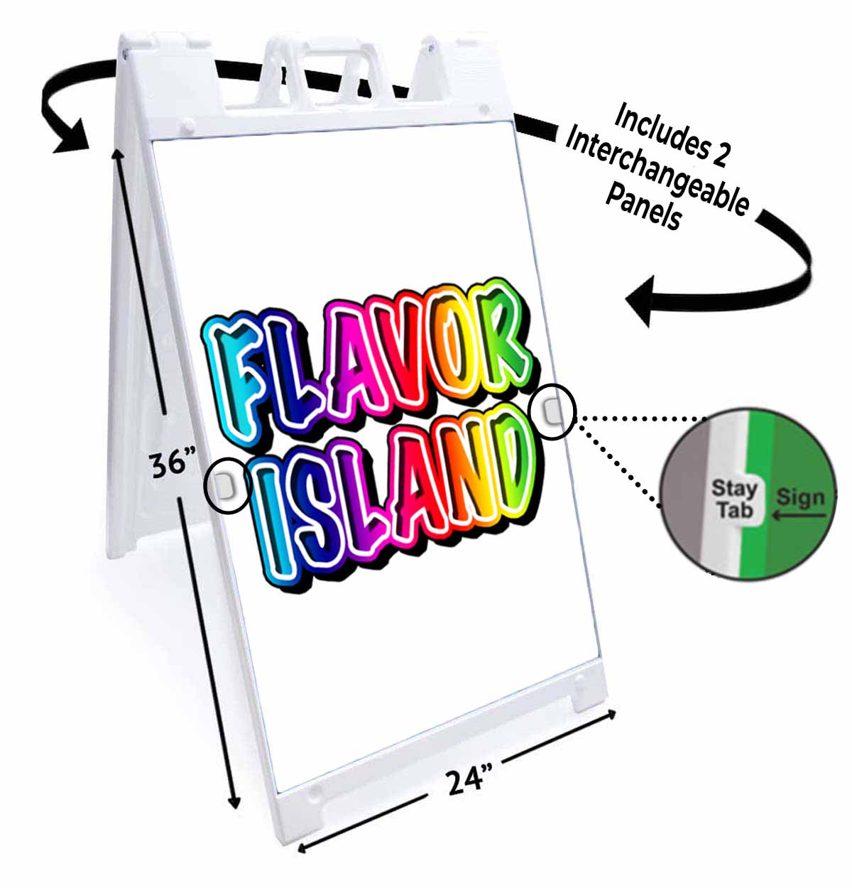 The Flavor Island A-Frame Signs, Decals, or Panels are great advertising tools for your business. Studies show that A-Frame Signs, Decals, and Panels draw more notice than many other advertising methods. A-Frame Signs, Decals, and Panels are a price effective ways to grab attention and raise awareness for your business.