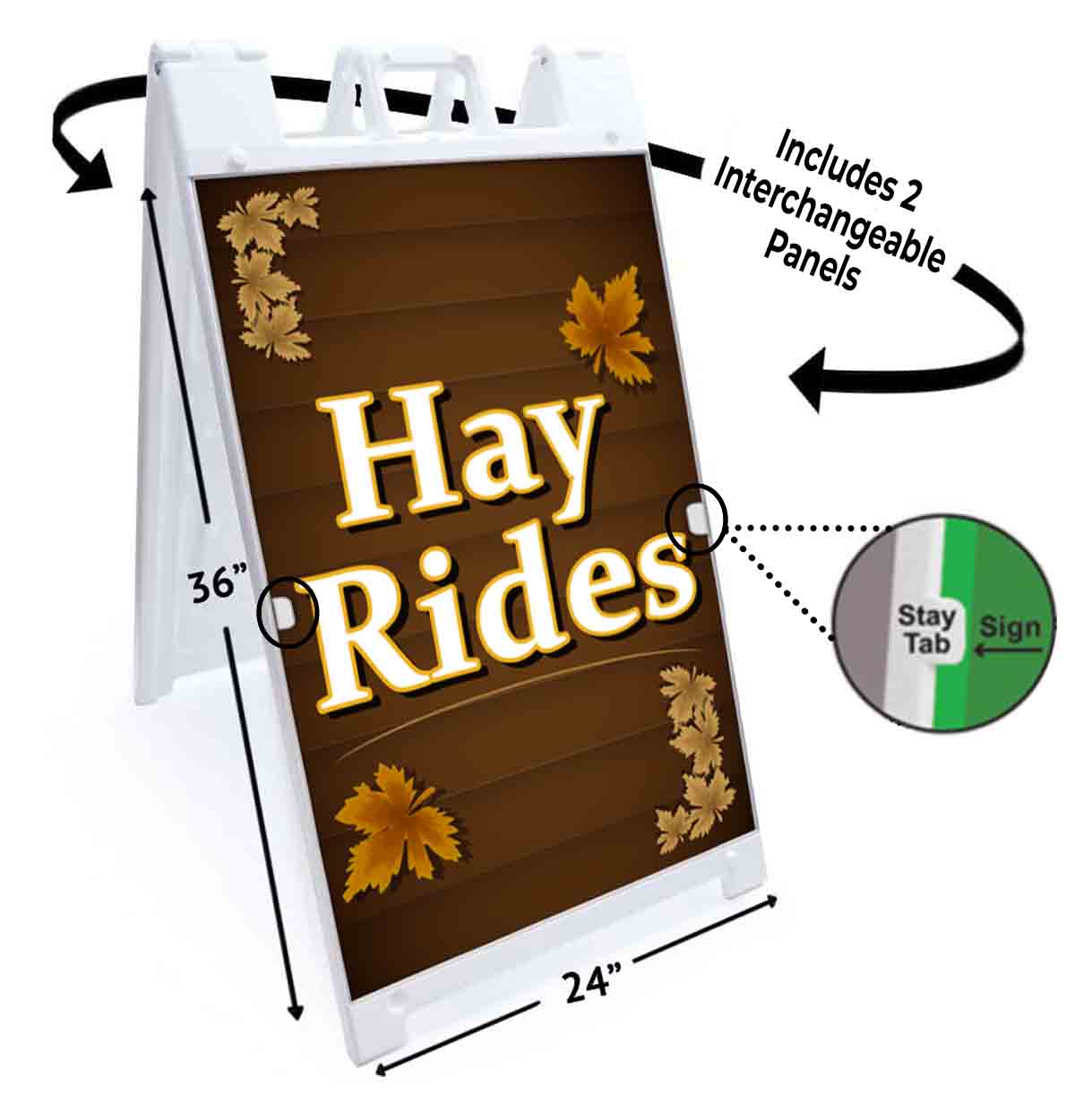 The Hay Rides A-Frame Signs, Decals, or Panels are great advertising tools for your business. Studies show that A-Frame Signs, Decals, and Panels draw more notice than many other advertising methods. A-Frame Signs, Decals, and Panels are a price effective ways to grab attention and raise awareness for your business.