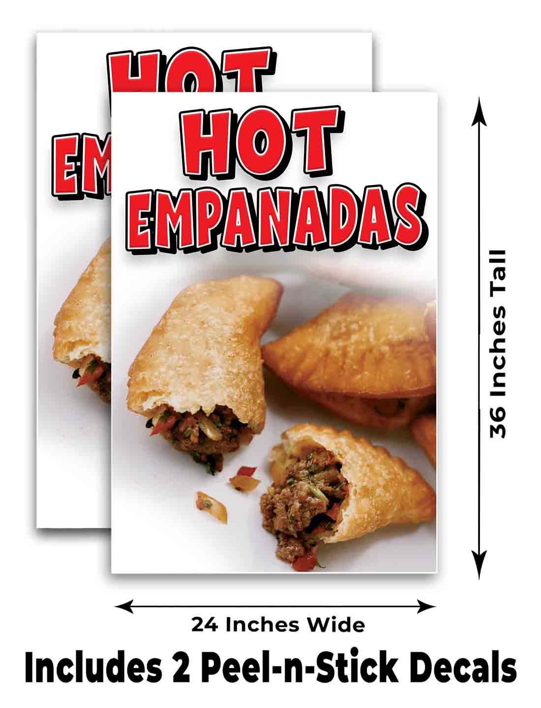 Ordering our Hot Empanadas A-Frame Signs, Decals, or Panels is quick and simple. Just select which product you want, enter in your quantity, and either add it to your Cart and continue shopping, or just click “Buy It Now” to be taken directly to the Check Out page.