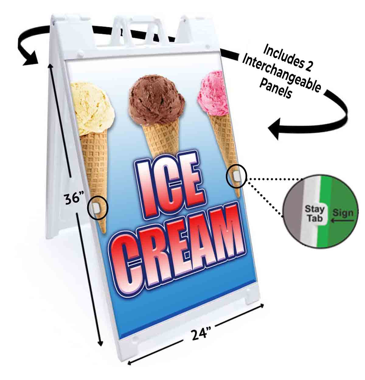 The Ice Cream A-Frame Signs, Decals, or Panels are great advertising tools for your business. Studies show that A-Frame Signs, Decals, and Panels draw more notice than many other advertising methods. A-Frame Signs, Decals, and Panels are a price effective ways to grab attention and raise awareness for your business.