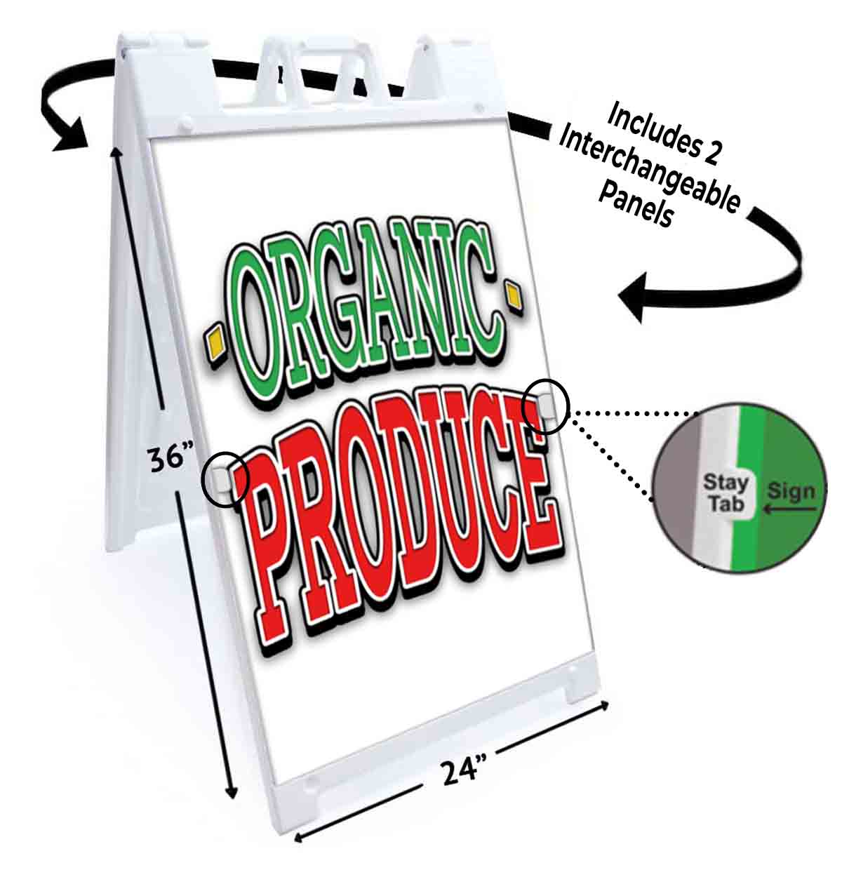 The Organic Produce A-Frame Signs, Decals, or Panels are great advertising tools for your business. Studies show that A-Frame Signs, Decals, and Panels draw more notice than many other advertising methods. A-Frame Signs, Decals, and Panels are a price effective ways to grab attention and raise awareness for your business.