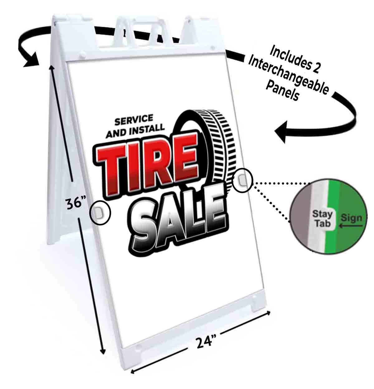 The Tire Sale A-Frame Signs, Decals, or Panels are great advertising tools for your business. Studies show that A-Frame Signs, Decals, and Panels draw more notice than many other advertising methods. A-Frame Signs, Decals, and Panels are a price effective ways to grab attention and raise awareness for your business.