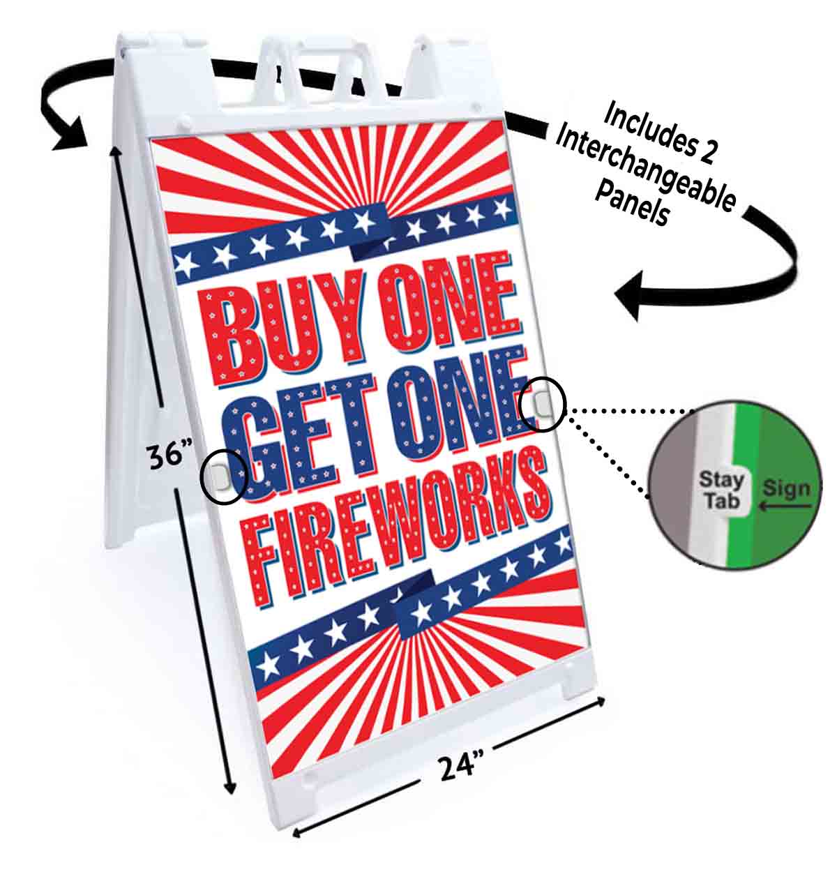 The Fireworks A-Frame Signs, Decals, or Panels are great advertising tools for your business. Studies show that A-Frame Signs, Decals, and Panels draw more notice than many other advertising methods. A-Frame Signs, Decals, and Panels are a price effective ways to grab attention and raise awareness for your business.