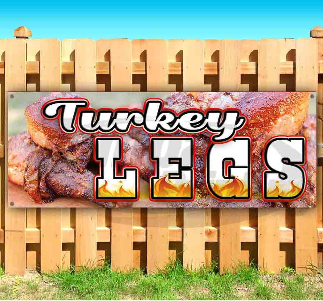 The Turkey Legs Banner is a great advertising tool for your business. Studies show that Banners draw more notice than many other advertising methods. Banners are a price effective way to grab attention and raise awareness for your business.