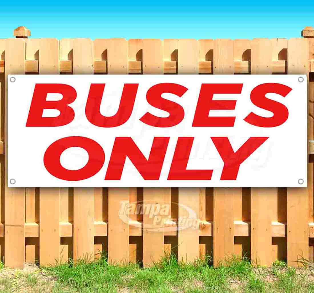 Ordering our Buses Only Banner is quick and simple. We offer many different sizes and custom banners as well.