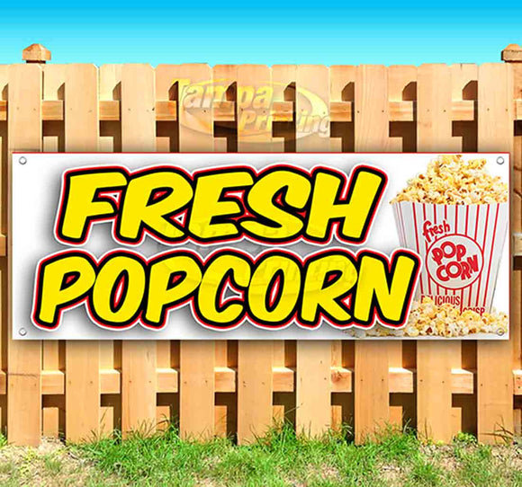 The Fresh Popcorn Banner is a great advertising tool for your business. Studies show that Banners draw more notice than many other advertising methods. Banners are a price effective way to grab attention and raise awareness for your business.