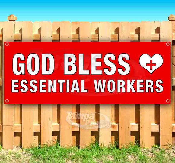 The God Bless Essential Workers Banner is a great advertising tool for your business. Studies show that Banners draw more notice than many other advertising methods. Banners are a price effective way to grab attention and raise awareness for your business.
