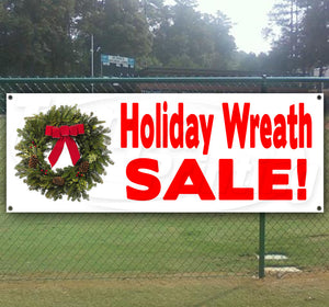 The Holiday Wreath Sale Banner is a great advertising tool for your business. Studies show that Banners draw more notice than many other advertising methods. Banners are a price effective way to grab attention and raise awareness for your business.