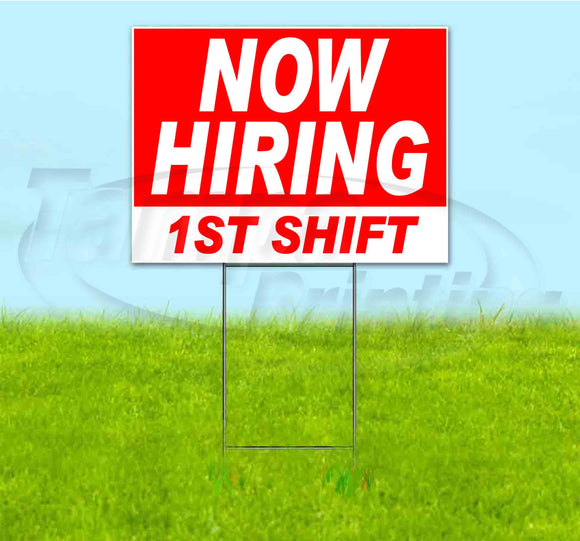 The Now Hiring 1st Shift Yard Sign is a great advertising tool for your business or for personal use. Yard Signs are a price effective way to grab attention.