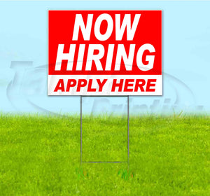 The Now Hiring Apply Here Yard Sign is a great advertising tool for your business or for personal use. Yard Signs are a price effective way to grab attention.