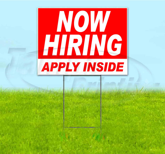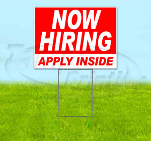 The Now Hiring Apply Inside Yard Sign is a great advertising tool for your business or for personal use. Yard Signs are a price effective way to grab attention.