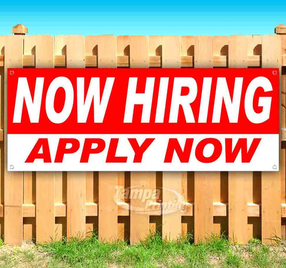 The Now Hiring Apply Now Banner is a great advertising tool for your business. Studies show that Banners draw more notice than many other advertising methods. Banners are a price effective way to grab attention and raise awareness for your business.
