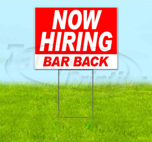 The Now Hiring Bar Back Yard Sign is a great advertising tool for your business or for personal use. Yard Signs are a price effective way to grab attention.