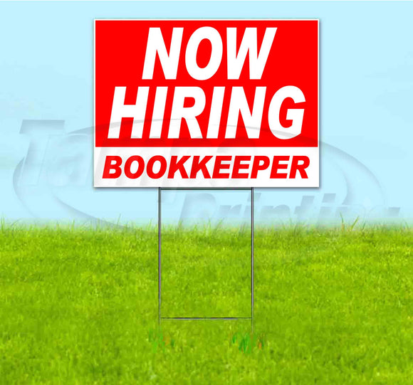 This listing is for a Now Hiring Bookkeeper Yard Sign