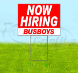 The Now Hiring Busboys Yard Sign is a great advertising tool for your business or for personal use. Yard Signs are a price effective way to grab attention.