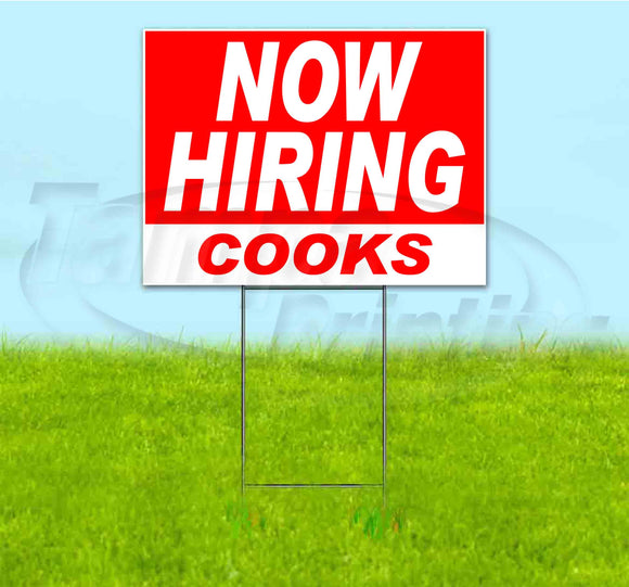 The Now Hiring Cooks Yard Sign is a great advertising tool for your business or for personal use. Yard Signs are a price effective way to grab attention.