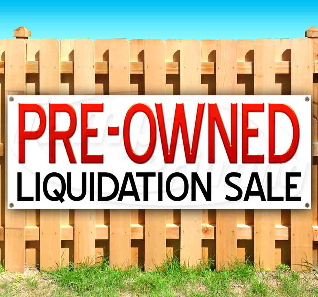 The Pre-Owned Liquidation Sale Banner is a great advertising tool for your business. Studies show that Banners draw more notice than many other advertising methods. Banners are a price effective way to grab attention and raise awareness for your business.