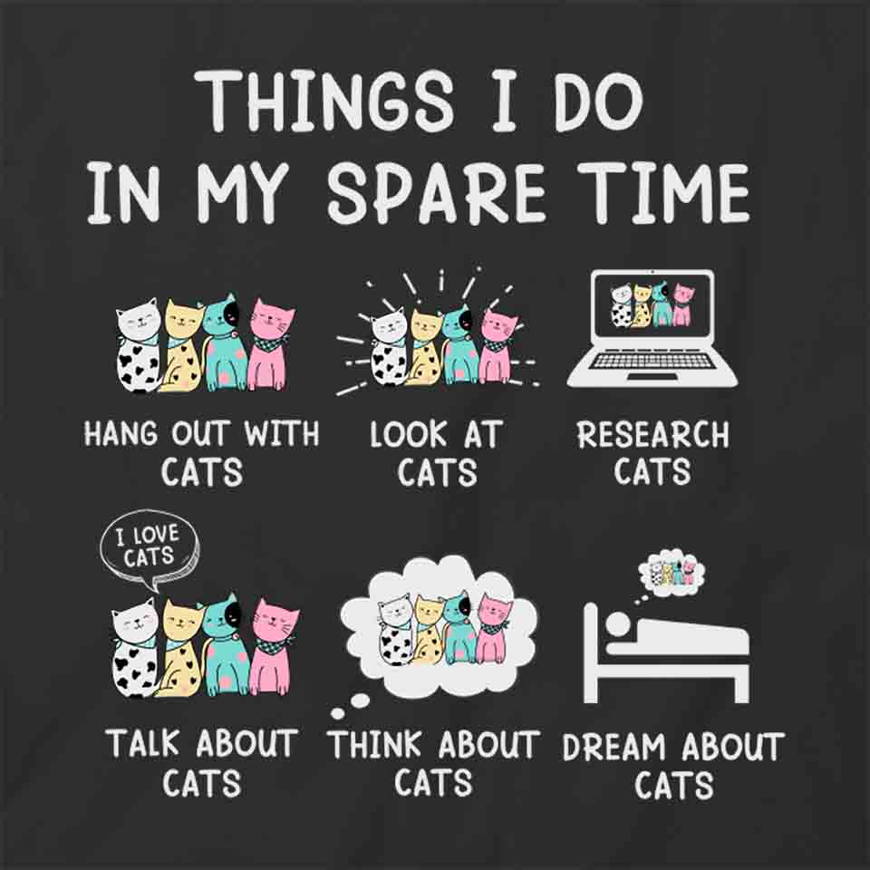 The Cats Spare Time T-Shirt is a great conversation starter. Our Cats Spare Time T-Shirt is soft, comfortable, and stylish. And the design is crisp, clear, and durable.