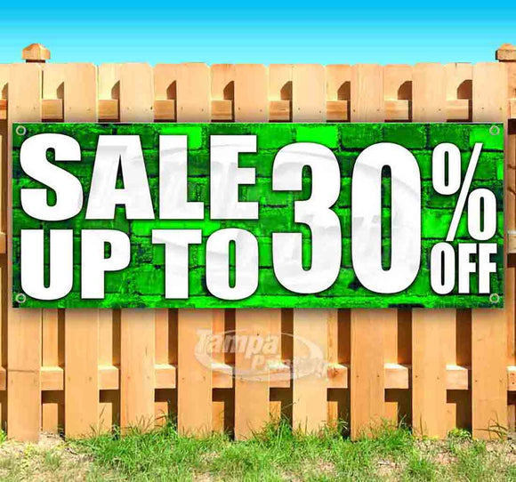 The Sale Up To 30% Off Banner is a great advertising tool for your business. Studies show that Banners draw more notice than many other advertising methods. Banners are a price effective way to grab attention and raise awareness for your business.