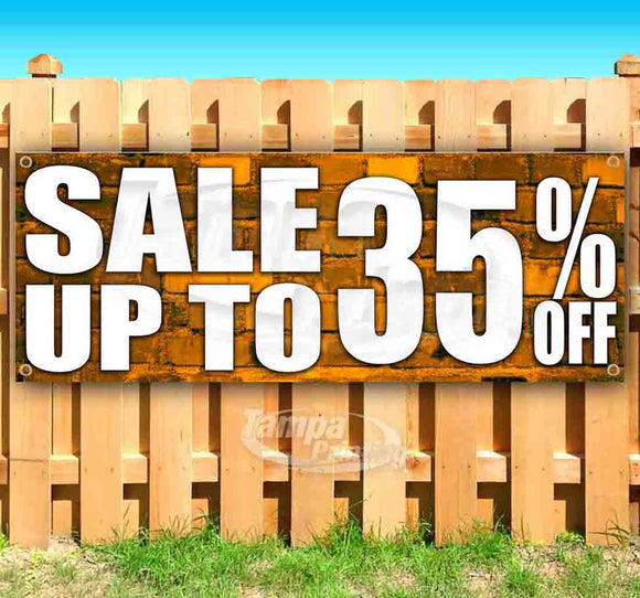 The Sale Up To 35% Off Banner is a great advertising tool for your business. Studies show that Banners draw more notice than many other advertising methods. Banners are a price effective way to grab attention and raise awareness for your business.