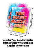 And lastly we offer Two (2) packs of 24" wide by 36" tall 4mm Corrugated Plastic Panels with graphics applied to 1 side. These do not include the A-frame stand. The corrugated plastic panels are perfect for those who do not need an A-Frame stand to hold the panels, or for those who already have an A-Frame stand and just need extra inserts..