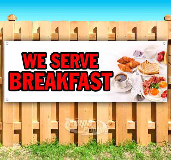 The We Serve Breakfast Banner is a great advertising tool for your business. Studies show that Banners draw more notice than many other advertising methods. Banners are a price effective way to grab attention and raise awareness for your business.