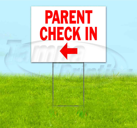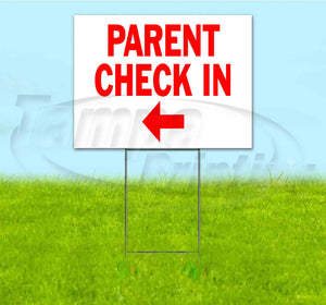 The Parent Check In Left Yard Sign is a great advertising tool for your business or for personal use. Yard Signs are a price effective way to grab attention.